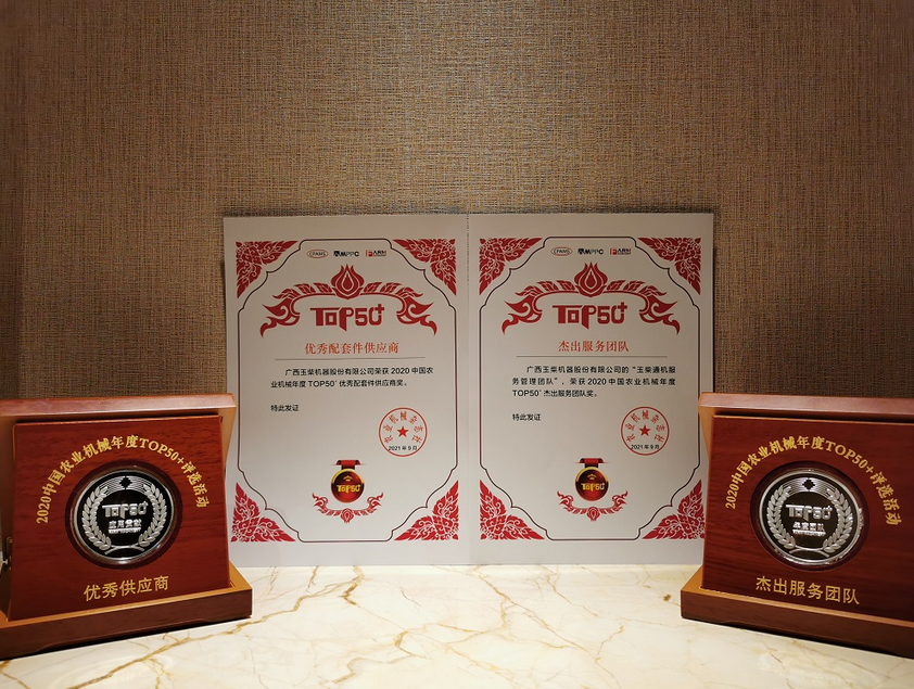 查看詳情近日,在“2021第九屆中國(guó)農(nóng)機(jī)高端論壇暨2020中國(guó)農(nóng)業(yè)機(jī)械年度TOP50+頒獎(jiǎng)盛典”上,玉柴股份榮獲 “優(yōu)秀配套件供應(yīng)商獎(jiǎng)”和“杰出服務(wù)團(tuán)隊(duì)獎(jiǎng)” 兩項(xiàng)大獎(jiǎng)。