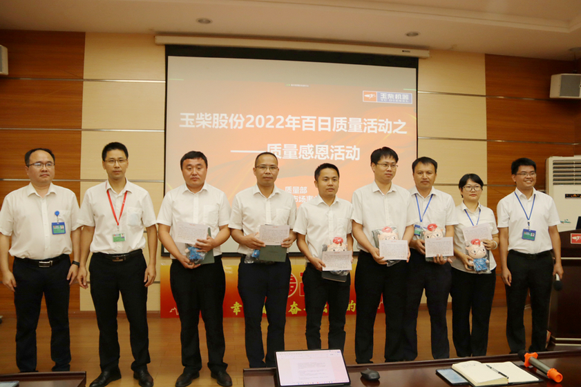 查看詳情8月25日,玉柴股份2022年百日質(zhì)量系列之質(zhì)量感恩活動(dòng)正式啟動(dòng)。首場(chǎng)質(zhì)量感恩活動(dòng)在玉柴專賣(mài)一樓多功能廳開(kāi)展,感恩對(duì)象為服務(wù)與后市場(chǎng)事業(yè)部的客服呼叫和技術(shù)服務(wù)、服務(wù)經(jīng)理等崗位的優(yōu)秀代表。玉柴股份副總裁陳海參加活動(dòng)。